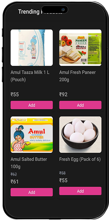 User-friendly apps that let customers browse items, create carts, place orders, track deliveries, and pay securely. Loyalty programs and personalized offers keep customers engaged and satisfied.